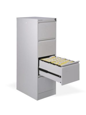 Celokovové kartotéky určené na zkladanie dokumentov A4 v závesných obaloch. Presné teleskopické vedenie na guličkových ložiskách pre ĺahký a tichý chod zásuviek, zariadenie proti preváženiu (nemožno vysunúť viac zásuviek ...