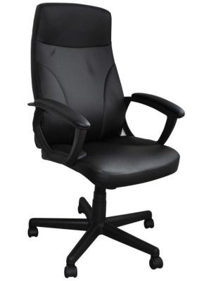 Kancelárska otočná stolička s hojdacím mechanizmom v čiernej ekokoži. Popis produktu • kancelárska stolička čalúnená ekokožou čiernej farby• TILT mechanizmus – schopnosť voľne sa kývať a uzamknúť pracovnú ...