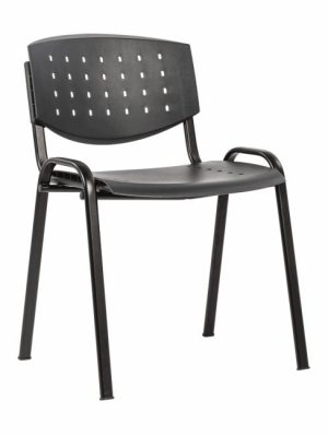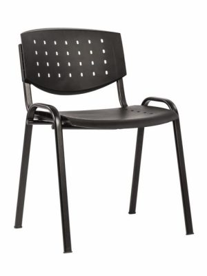 Stohovateľná konferenčná stolička.Farba čierna. Popis produktu • oceľový rám lakovaný na čierno s oválnym profilom 15×30 mm• odolné plastové sedadlo a operadlo• stohovateľnosť 5 kusov• hmotnosť: 4,2 kg• ...