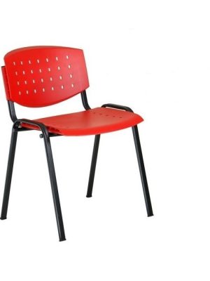 Stohovateľná konferenčná stolička.Farba červená. Popis produktu • oceľový rám lakovaný na čierno s oválnym profilom 15×30 mm• odolné plastové sedadlo a operadlo• stohovateľnosť 5 kusov• hmotnosť: 4,2 kg• ...
