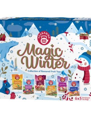 Čaj Teekanne Magic Winter kolekcia. 6×5 Nálevových vrecúšok. Obsah balenia: TEEKANNE Fresh Orange Ovocno-bylinný čaj aromatizovaný, s príchuťou pomaranča 5 x 2,25 g, TEEKANNE Ginger & Lemon Ovocno-bylinný čaj ...