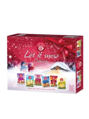 TEEKANNE Let it snow kolekcia 65gLet it Snow-Ovocno,bylinný čaj aromatizovaný s príchuťou snehových pusiniek a malín 5×2,25 gZloženie: ibištek,jablko,šípky,smotanová aróma,aróma snehových pusiniek,aróma malín,listy stévie,maliny (1%)Apple Cinnamon-Ovocno,bylinný čaj aromatizovaný s ...