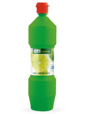 Pitná voda, limetková šťava z koncentrátu 20%, kyselina: kyselina citrónová E 330, aróma, antioxidant: kyselina L-askorbová, konzervačná látka: benzoan sodný E 211.Limetkový koncentrát ATI Lemonita vyrobený z čerstvých limetiek ...