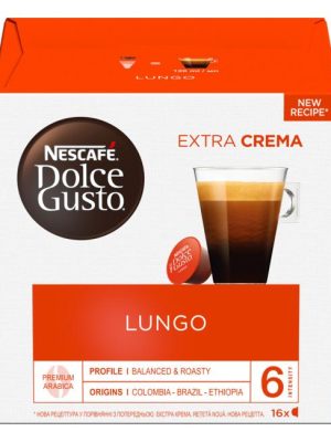 Táto vyvážená stredne tmavá pražená káva je 100% arabika s väčším objemom ako espresso (120 ml). Intenzita 6/11. Kávové kapsule NESCAFÉ® Dolce Gusto® Lungo vám ponúknu prvotriednu kvalitu, s ...