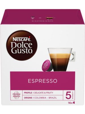 Elegantná ľahko pražená káva, 100% arabika, v malej 50 ml šálke. Intenzita 5/11. Kávové kapsule NESCAFÉ® Dolce Gusto® Espresso vám ponúknu prvotriednu kvalitu, s jednoduchosťou prípravy. Stačí vložiť kapsulu ...