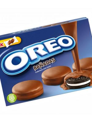 Kakaové sušienky s náplňou s vanilkovou príchuťou celomáčané v mliečnej čokoláde. Hmotnosť 110 g. Alergény Pšeničná múka, Sušené odtučnené mlieko, Pšeničný škrob, Laktóza (z mlieka), Mliečny tuk, Emulgátory ...