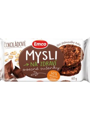 Emco Mysli na Zdraví Ovsené sušienky čokoládové polomáčané v kakaovej poleve 60 g. Alergény Výrobok môže obsahovať sóju, vajcia, mlieko, orechy a sezam. Alergény sú vyznačené v zložení ...