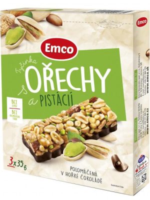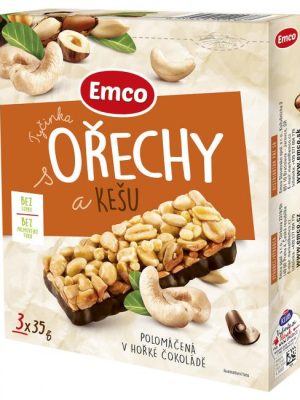 Skvelé tyčinky Emco vhodné či už do práce, školy alebo na výlet. Zmes orechov a obilných výrobkov so spojivom na báze cukrov, polomáčaná v horkej čokoláde. V balení 3 ...