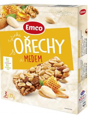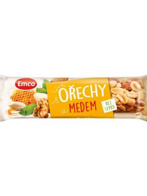 Skvelá orechová tyčinka Emco s medom, vhodná na vaše cesty, či už do práce, školy či na výlet. Neobsahuje lepok, hrozienka a palmový tuk. Hmotnosť 35 g. Alergény ...