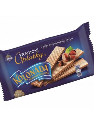 Trandičné krehké oblátky Kolonáda plnené tabuľkou orieškovej čokolády. Hmotnosť 140 g. Alergény Pšeničná múka, Sušená srvátka (z mlieka), Lieskovooriešková pasta 4,4 %, Sójová múka, Emulgátor (sójový lecitín).Môže obsahovať ...