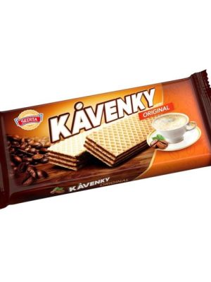 Oblátky s kávovou krémovou náplňou (78%). Zloženie:Cukor, Tuk rastlinný palmový a kokosový, Múka pšeničná, Mlieko sušené odtučnené, Múka sójová, Lieskovce pražené, Kakao odtučnené, Káva pražená 1%, Škrob kukuričný, Olej ...