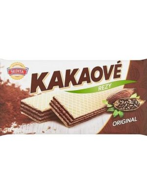 Oblátkové rezy s kakaovou krémovou náplňou (78%). Hmotnosť 50 g. Väčšie balenie 48 ks.Hmotnosť: 50 g Zloženie: Tuk rastlinný palmový a kokosový, Múka PŠENIČNÁ, Cukor, Kakao odtučnené 9%, MLIEKO ...