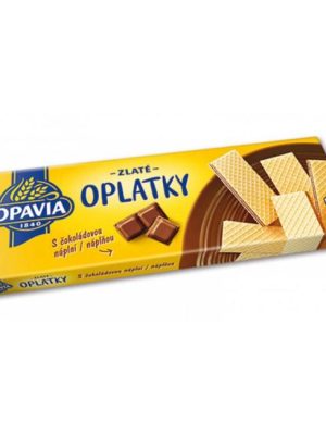 Jemné oblátky OPAVIA s čokoládovou príchuťou. Hmotnosť 146 g. Alergény PŠENIČNÁ múka, Sušená srvátka (z MLIEKA), Laktóza (z MLIEKA), Emulgátor (SÓJOVÝ). Môže obsahovať VAJCIA, ORECHY. Meno alebo ...