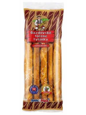 Gazdovské točené tyčinky s pšeničnej múky sypané soľou.