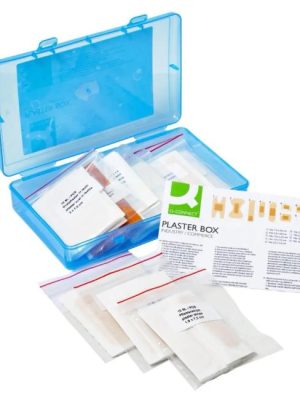 Ideálne na drobné poranenia v reštauráciách a obchodných prevádzkach. Praktická, uzatvárateľná plastová krabička. Obsah: – 10 bandáží na kĺby prstov (7,5 x 4 cm) z textilnej elastickej látky. – ...