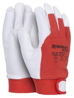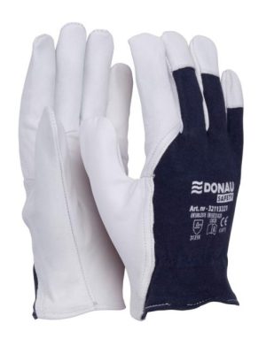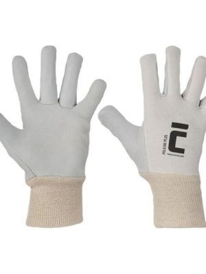 Rukavice šité z jemnej lícovej ovčiny v dlani, bielej bavlnenej tkaniny na chrbte a s nápletom. Materiál:Palm material: ovčia lícová kožaBack material: bavlna, Pletený Normy:EN ISO 21420 EN 388 ...