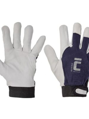Rukavice šité z jemnej lícovej kozinky a lícovej ovčinky v dlani, modrej bavlnenej tkaniny na chrbte a s manžetou na suchý zips. Palm material: ovčia lícová kožaMateriál manžety: guma, ...