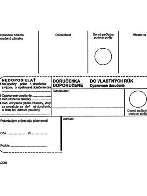 Biele papierové poštové obálky B6 s doručenkou do vlastných rúk – opakované doručenie rozmerov 125 × 176 mm s okienkom, popisom a lichobežníkovou klopou, 90 g/ m2. Balenie obsahuje ...