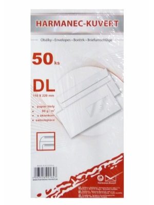 Biele obálky rozmeru 110 × 220 mm, vyrobené z bezdrevného papiera, 80 g/ m2. Samolepiace s okienkom z priehľadnej fólie vpravo.Formát: DLBalenie: 50 ks
