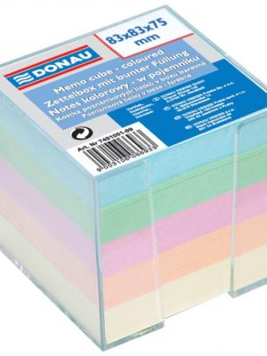 Farebné (pastelové farby) nelepené poznámkové bloky v čírej plastovej krabičke.Rozmer bločkov 83x83x75mm.Rozmer krabičky 92x92x82mmVäčšie balenie 6 ks.