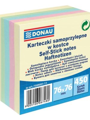 Samolepiace bločky v jemných farbách, ideálne na zanechanie správ v kancelárii aj doma, počet listov: 5x90ks, veľkosť 76x76mm. Hmotnosť: 75 g / m2