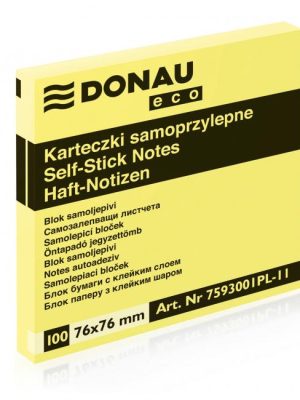 Žlté samolepiace bloky, 100-lístkové, jednotlivo balené. Ideálne na odkazy. Gramáž 70 g/m2. Rozmery 76 x 76 mm.Väčšie balenie 12 ks.