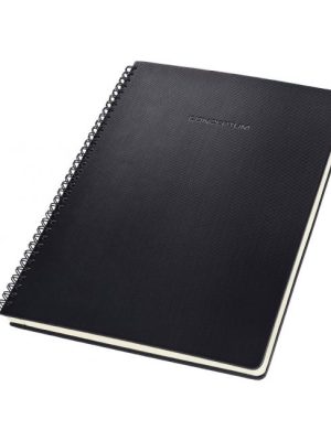 Zápisník s kovovou špirálou po dlhšej strane, vnútorným vreckom na zadnej vnútornej strane, dierovanými stranami s mikroperforáciou. Pevné čierne dosky majú jemné ryhovanie. 160 strán gramáže 80 g / m², formát A5. Farba ...
