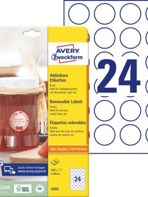Biele kruhové etikety na formáte A5, na viacúčelovú tlač aj ručný popis.Priemer: 24 mmFarba: bielaBalenie: 16 hárkov