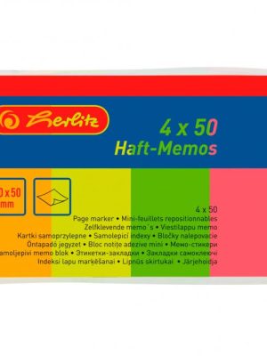 Papierové záložky viacnásobne prelepiteľné a popisovateľné – 4×50 lístkov. Rozmery 20×50 mm. Farba mix neonové farby.