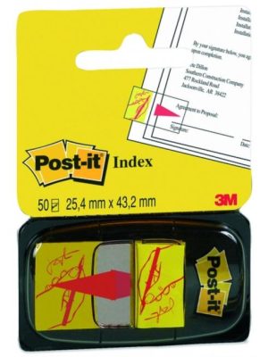 Indexové fóliové lístky, popisovateľné a snímateľné. Rozmery 25 × 43 mm. V balení 50 lístkov. Farba žltá.