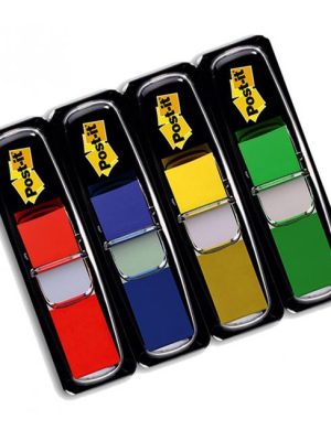 Super silné rovné záložky, extra veľký formát 50,8 × 38 mm. Premiestniteľné, odstrániteľné, popisovateľné perom. Dodávané v balení 4 farieb (červená, žltá, zelená a modrá) po 6 záložkách. – ...
