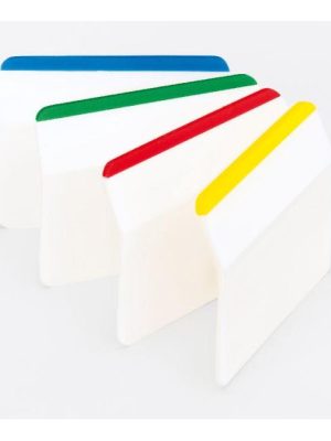 Záložky na sprehľadnenie obsahov závesných obalov v registroch, kartotékach, archívoch a pod. Znovunalepiteľné a popisovateľné. Rozmery záložky 50,8 × 38 mm. Dodávané v balení 4 farieb (červená, modrá, zelená, ...