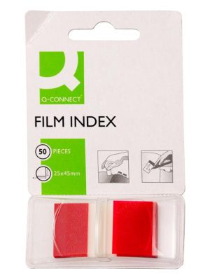 Indexové fóliové lístky, popisovateľné a snímateľné. Rozmery 25 × 43 mm. V balení 50 lístkov. Farba červená.