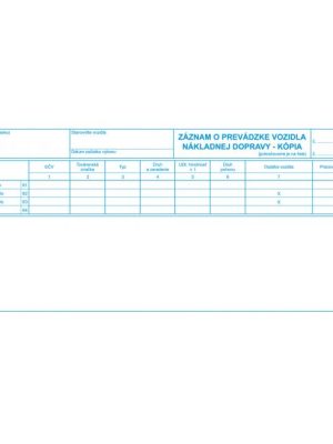 Dopravné tlačivo. Záznam o prevádzke vozidla nákladnej dopravy, A4, kniha, 100 listov, číslovanie.