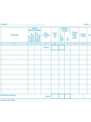 Dopravné tlačivo. Záznam o prevádzke vozidla osobnej dopravy, A5, blok, 100 listov.