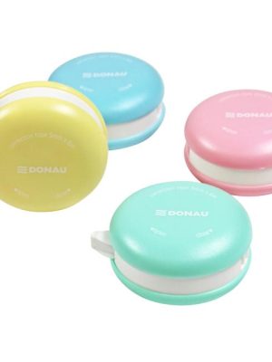 Korekčný roller v tvare makrónky, 16 ks na displeji, 4 rôzne farby tela, priemer 5 cm, dĺžka pásky 6 m, šírka pásky 5 mm, otváranie a zatváranie pomocou mechanizmu ...