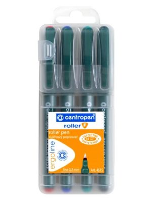 Sada 4 rollerov v základných farbách náplne a novom ergonomickom dizajne s jemným kovovým hrotom s guľôčkou z karbidu wolfrámu a nevysychajúcim atramentom (vydrží 14 dní bez vrchnáka). Šírka stopy ...