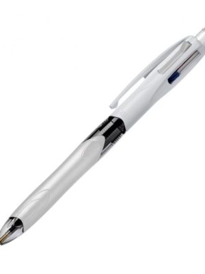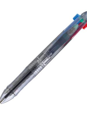 Jednorazové 4‑farebné pero so stláčacím mechanizmom a klipom s gumenou úchytovou zónou.