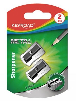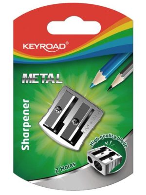 Kovové strúhadlo KEYROAD, vybavené dvoma čepeľami, určené na strúhanie ceruziek a pasteliek s maximálnym priemerom 8 alebo 11 mm. Balenie: blister. Farba: strieborná.