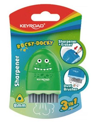 KEYROAD Rocky-Docky jednoduché plastové strúhadlo, šikovné a ľahko skladovateľné. So zábavnou potlačou, ktorá upúta pozornosť. Kombinuje tri funkcie: strúhadlo, gumu a štetec a vďaka tejto jedinečnej kombinácii je mimoriadne ...
