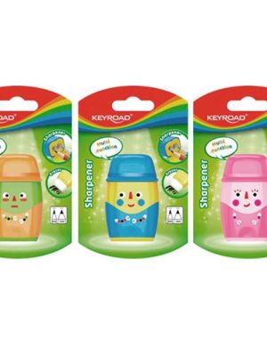 Plastové strúhadlo Keyroad 2 v 1 s gumou, s dvomi otvormi na ceruzky/pastelky s priemerom 8 a 11 mm a s nádobou. Balenie: blister. Farba: mix farieb.