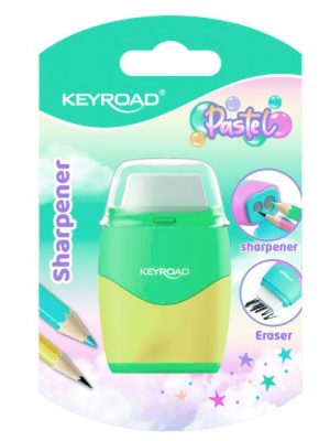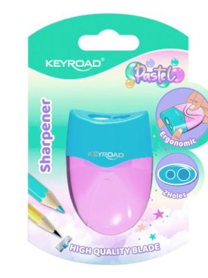 Plastové strúhadlo KEYROAD s nádobou, dvojité. Balenie: blister. Farba: mix pastelových farieb.