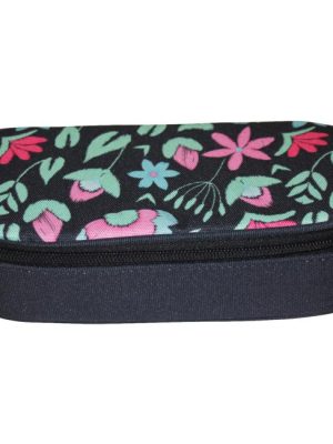 Vodeodolná polyesterová tkanina, kvetinová podšívka vo vnútri puzdra. Klopa s integrovaným vreckom a pútkami na pero. Hlavné vrecko na zips. Rozmery 23,5 x 8,5 x 5 cm.