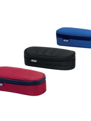 Puzdro s pútkami na písacie potreby. Tvrdý obal, zips, materiál polyester. Rozmery 21,5 x 9 x 6 cm. V balení 3 ks vo farbách červená, čierna a modrá.