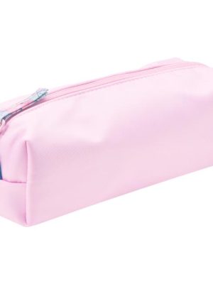 Saténová polyesterová tkanina, kvetinová podšívka vo vnútri puzdra. Pútko na konci puzdra umožňuje jeho ľahké prenášanie. Hlavné vrecko na zips. Rozmery: 21 x 7 x 8 cm. Farba ružová.