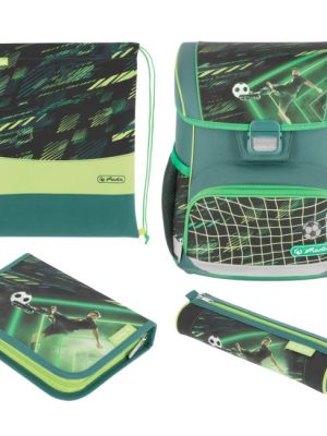 Školská taška s výbavou, ergonomicky tvarovaným a priedušným polstrovaním chrbta, nastaviteľnými ramennými popruhmi, výškovo nastaviteľným hrudným pásom, hlavným vreckom s priestorom na knihy, bočnými vreckami s elastickými pásikmi, predným vreckom ...
