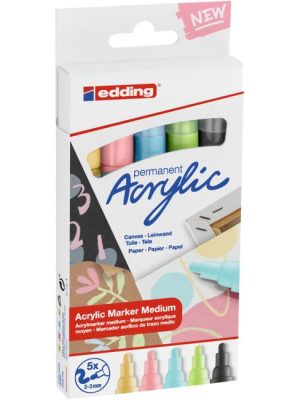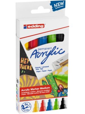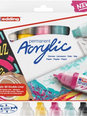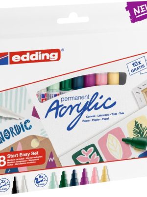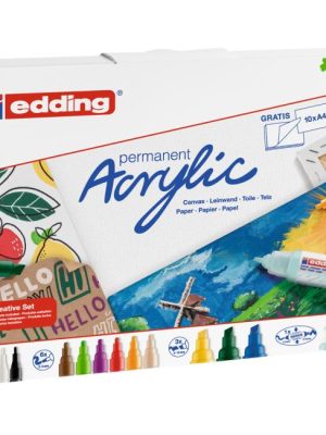 Akrylový popisovač na maľovanie na svetlé alebo tmavé povrchy, ideálny na materiály ako plátno alebo maliarsky papier. Súprava obsahuje 2 akrylové popisovače s tenkým hrotom edding 5300 a 6 ...