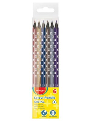 Trojhranné ceruzky z čierneho dreva.Tuha odolná voči lámaniu. Ľahko strúhateľné. farba: mix metalických farieb