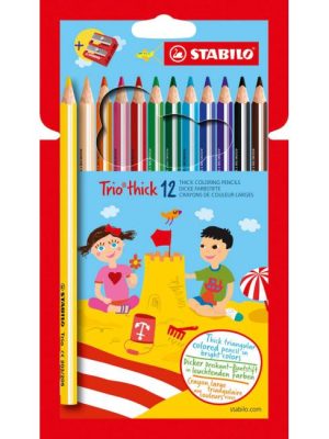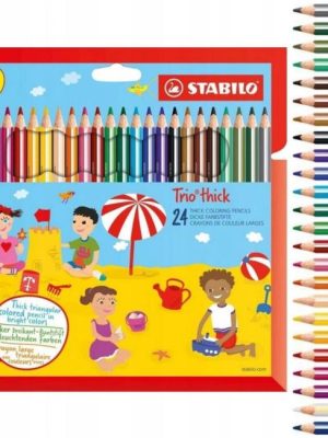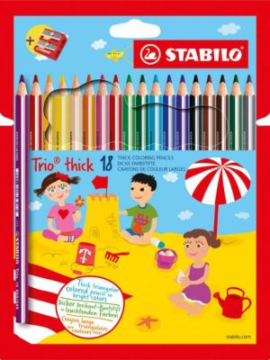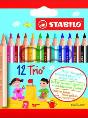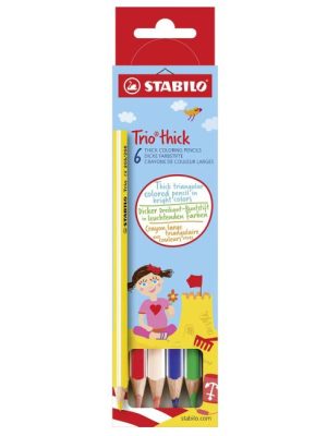 Trojhranné farbičky Trio majú ergonomický tvar pre pohodlné a uvoľnené držanie. Doporučený rozmer pre školákov 1. stupňa. Intenzívne farby, nelámavé tuhy. Priemer tuhy 4,2 mm. Balenie 6 farieb.