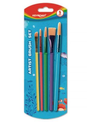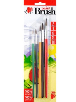 5 kusová sada guľatých školských štetcov s farebnou rúčkou. Štetina 100% poník. Ideálne na maľovanie vodovými farbami. Šírka štetiny 2-4-6-8-10 mm.